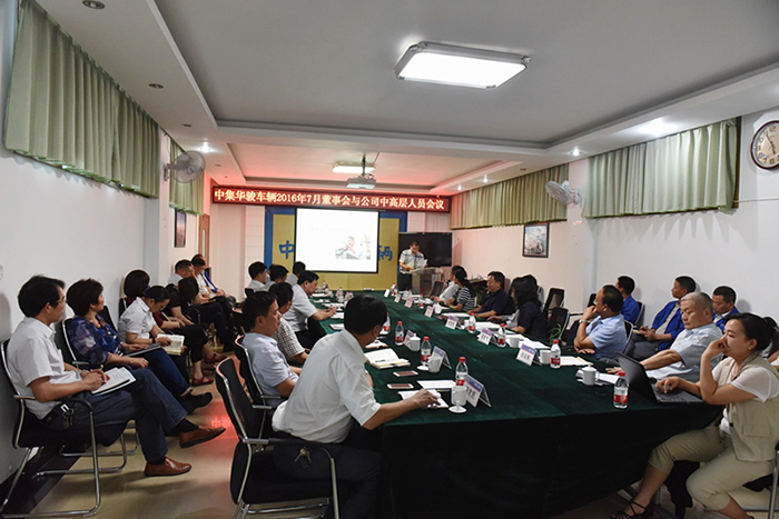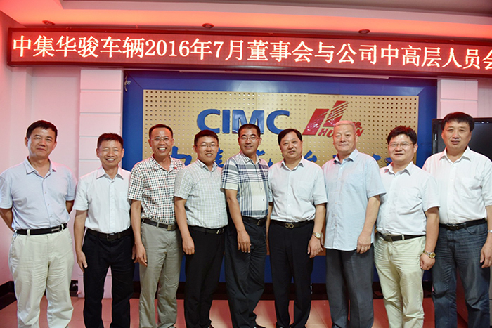 2016年7月27日下午15:50,中集華駿車輛2016年第二次董事會暨新一屆董事會與公司中高層溝通會在工業(yè)園職工餐廳二樓會議室召開。會議由中集車輛集團(tuán)總經(jīng)理/華駿車輛董事長李貴平先生主持。會議宣布郭喜洲先生當(dāng)選中集華駿車輛新任總經(jīng)理、郭永華先生擔(dān)任公司新一屆董事會董事長。