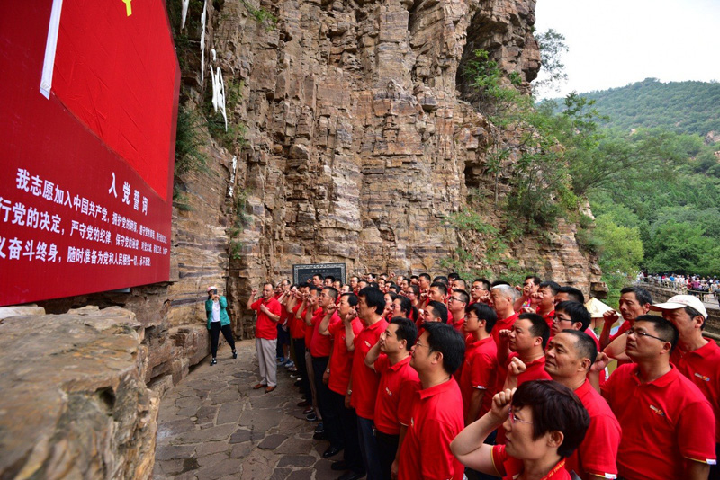 在青年洞前,全體黨員舉行隆重的入黨宣誓儀式。大家一起重溫入黨誓詞,發(fā)出了誓為共產(chǎn)主義奮斗終身的誓言,表達(dá)了為共產(chǎn)主義事業(yè)奮斗終生的決心!