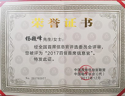 在剛召開(kāi)的“2017全球信息技術(shù)主管大會(huì)”上正式公布了“2017全國(guó)百佳首席信息官”名單,楊超峰榮耀入選,同時(shí)入選的還有格力電器、中廣核、東方航空、東風(fēng)日產(chǎn)等企業(yè)IT負(fù)責(zé)人。