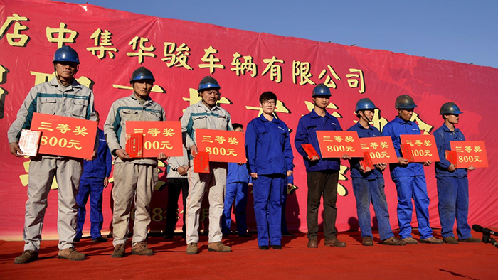 自卸車工廠總經(jīng)理賴明春為獲獎(jiǎng)員工頒獎(jiǎng)