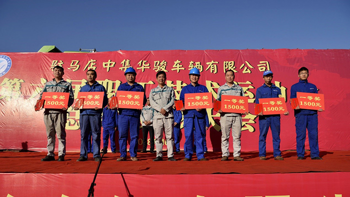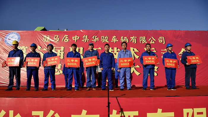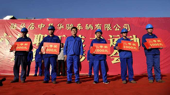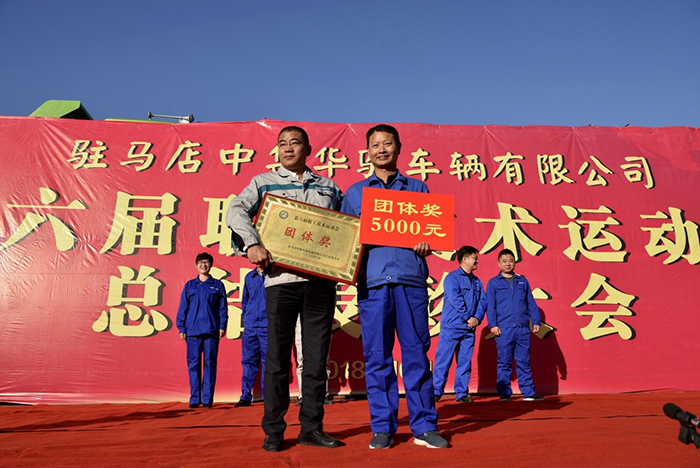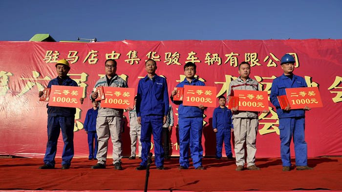 王春宣讀《關(guān)于對(duì)駐馬店中集華駿車輛有限公司第六屆職工技術(shù)運(yùn)動(dòng)會(huì)的表彰決定》。經(jīng)過(guò)角逐,轎運(yùn)車工廠代表隊(duì)獲得團(tuán)體獎(jiǎng);7名選手獲得一等獎(jiǎng)、10名選手獲得二等獎(jiǎng)、16名選手獲得三等獎(jiǎng)、101名選手獲得優(yōu)秀獎(jiǎng)。