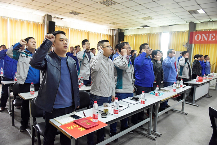 投身精益變革,轉(zhuǎn)變觀念,破舊立新,為建設(shè)受人信賴和尊重的專用車企業(yè)貢獻(xiàn)力量。與會人員在王春經(jīng)理的帶領(lǐng)下共同宣誓,誓言鏗鏘有力,擲地有聲!